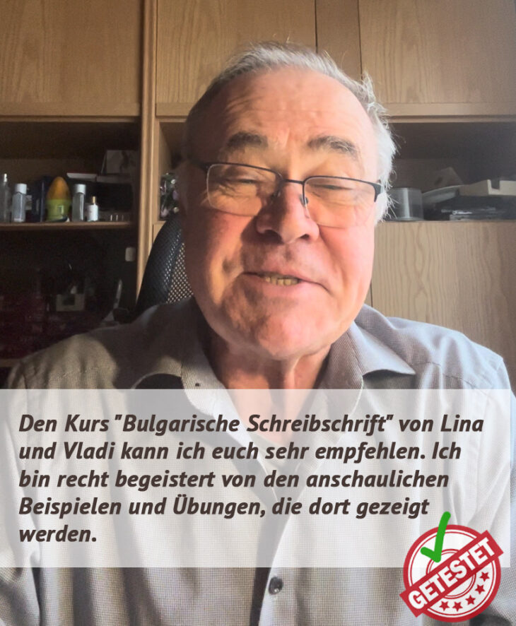 So, Du bist am Ende des Schreib-Trainings angekommen. Fühlst Du Dich schon etwas sicherer? Ist die bulgarische Schreibschrift schon etwas einfacher geworden?